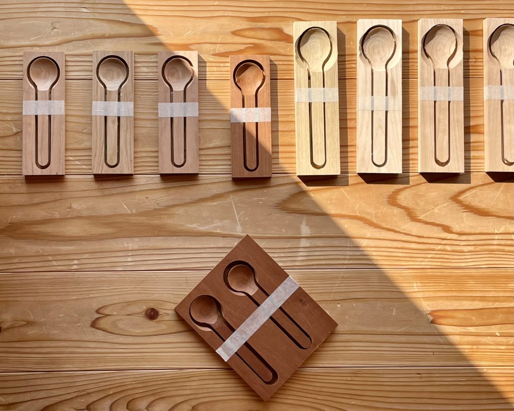 家具づくりに使われている無垢材で、自分だけのオリジナルスプーンを作ることができます。