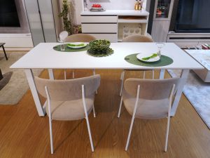 テーブルとチェア4脚の組み合わせで、空間を明るくすっきりと演出します。