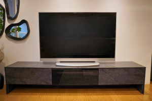 高級感のある石目柄が印象的な、スタイリッシュなテレビボード。