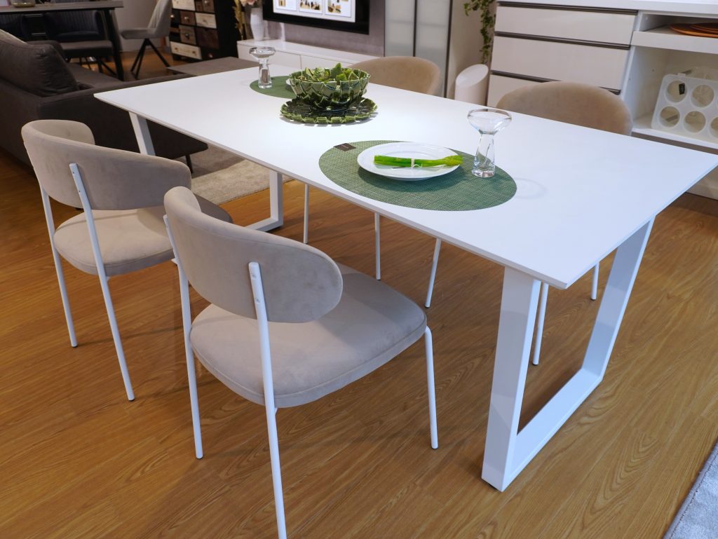 白を基調とした、上品で清潔感のあるダイニングセット。