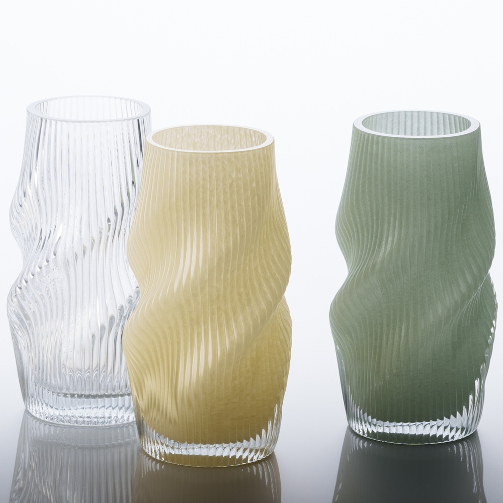 少し変わったフォルムの一輪挿しや、すっきりとした印象で花を美しく魅せるガラスベースなど。