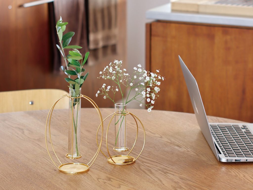 きれいなインテリアフラワーや花瓶などを