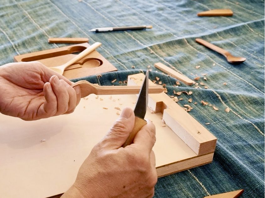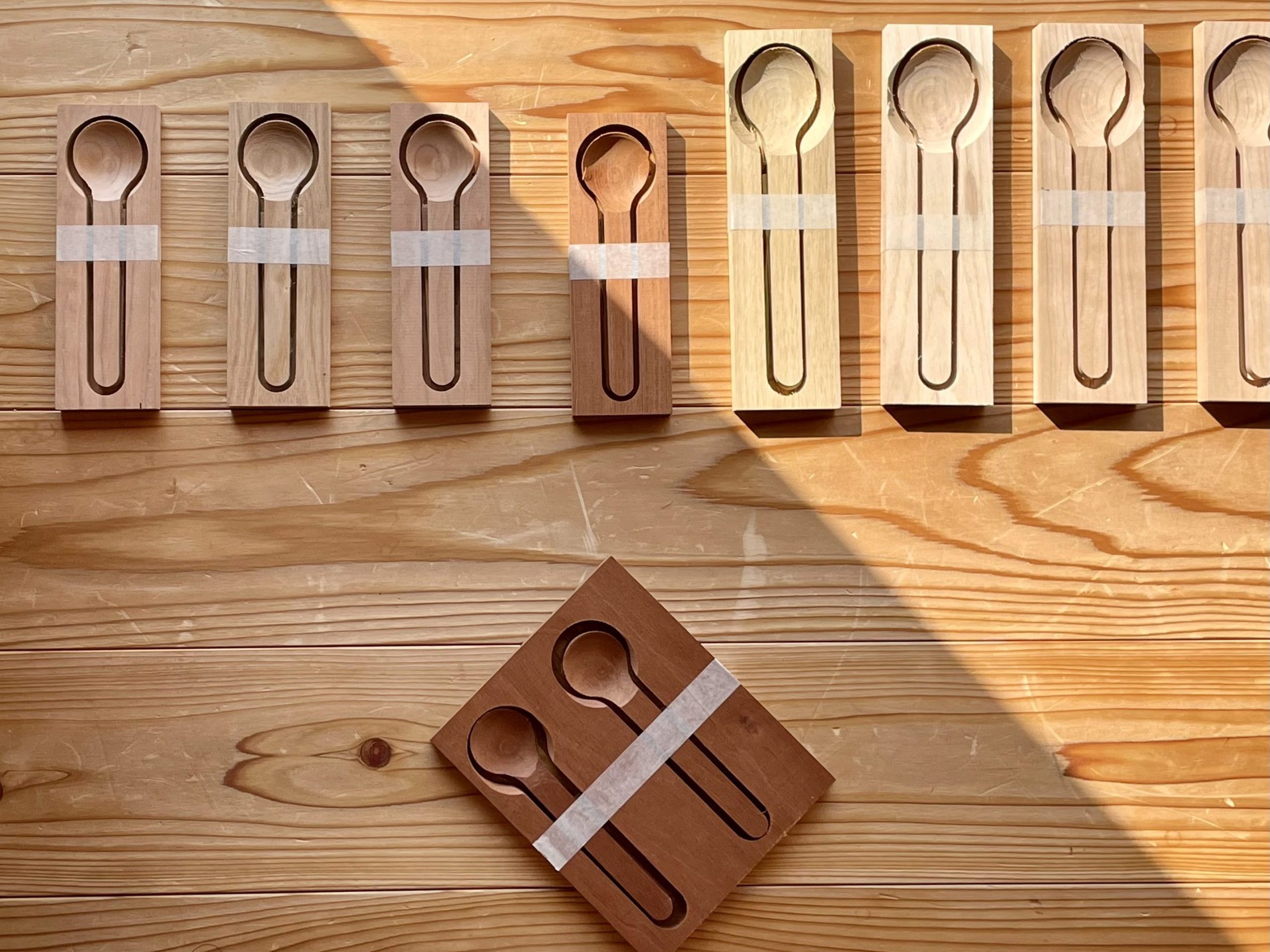 家具づくりに使われている素材で、小泉誠デザインのスプーンをつくるワークショップ。