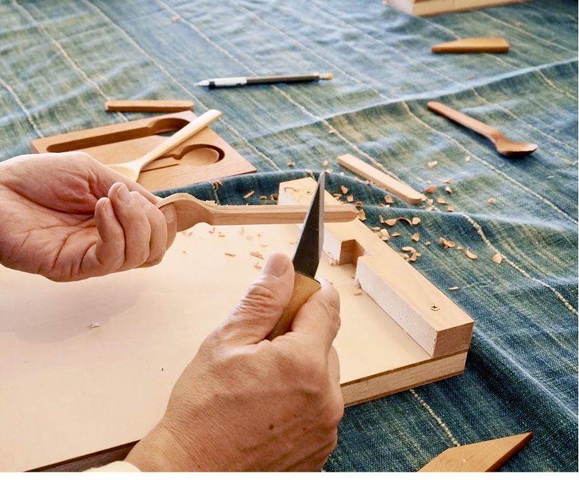 家具づくりに使われている素材で、小泉誠デザインのスプーンをつくるワークショップ。