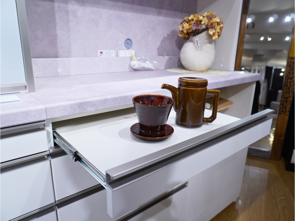大容量の収納スペースで、キッチンまわりを美しく整えます。