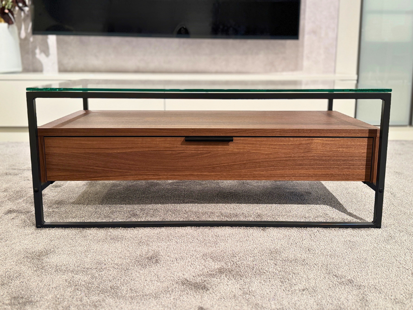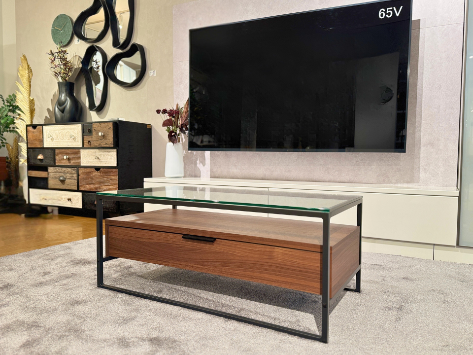 ガラス天板のセンターテーブルは、お部屋に開放感とスタイリッシュで洗練された印象を与えてくれます。