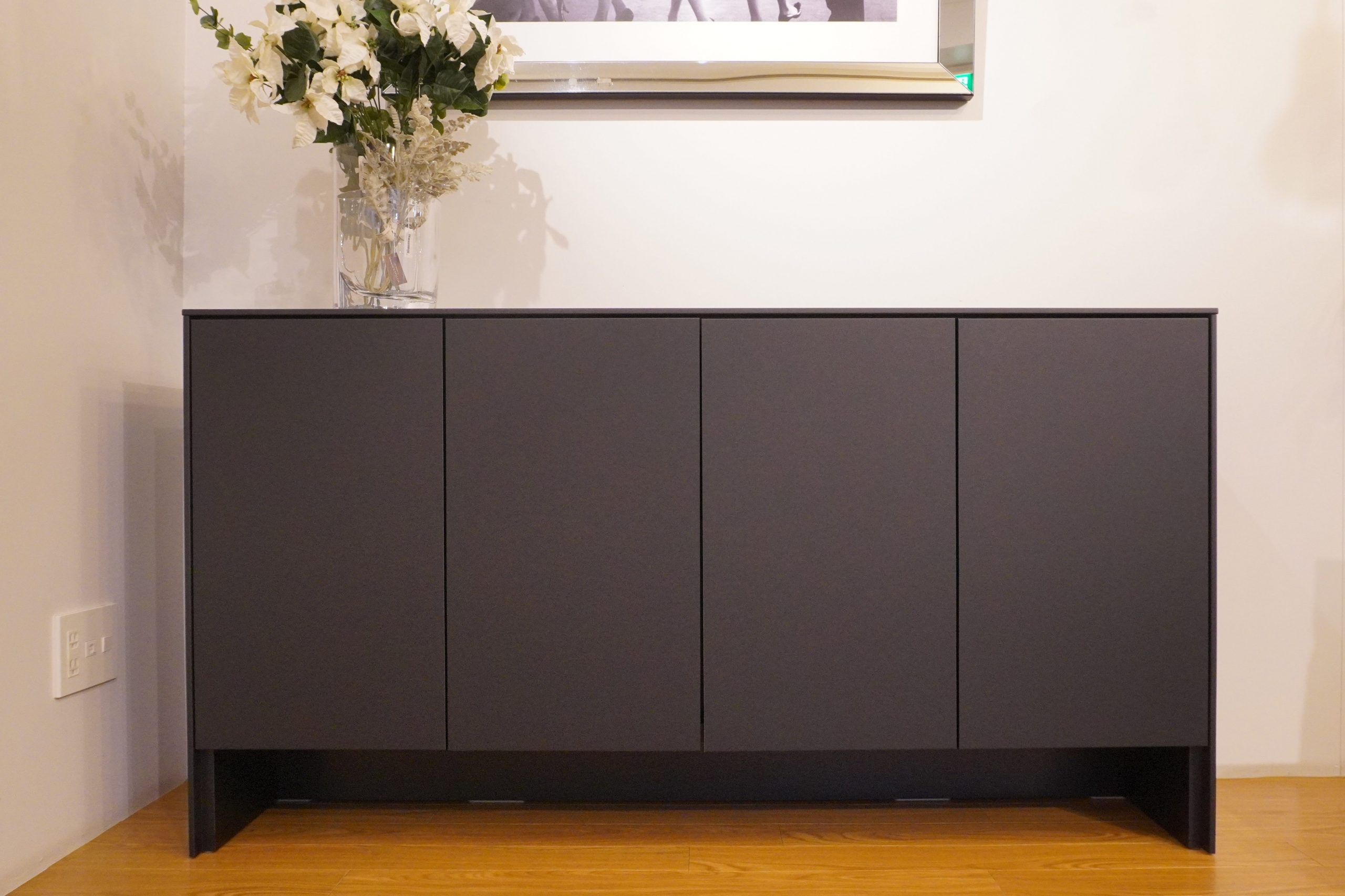 スリムなパネルに囲まれた洗練されたモダンデザインが特長のサイドボード。