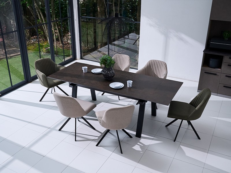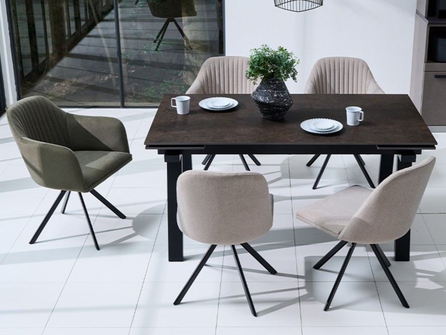 ダイニングでのんびり過ごしたい時はアーム付き、立ち座りが多い時にはアーム無しに。