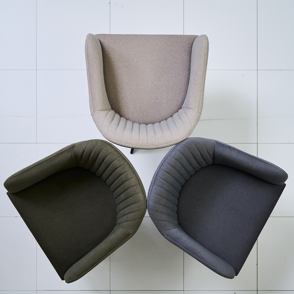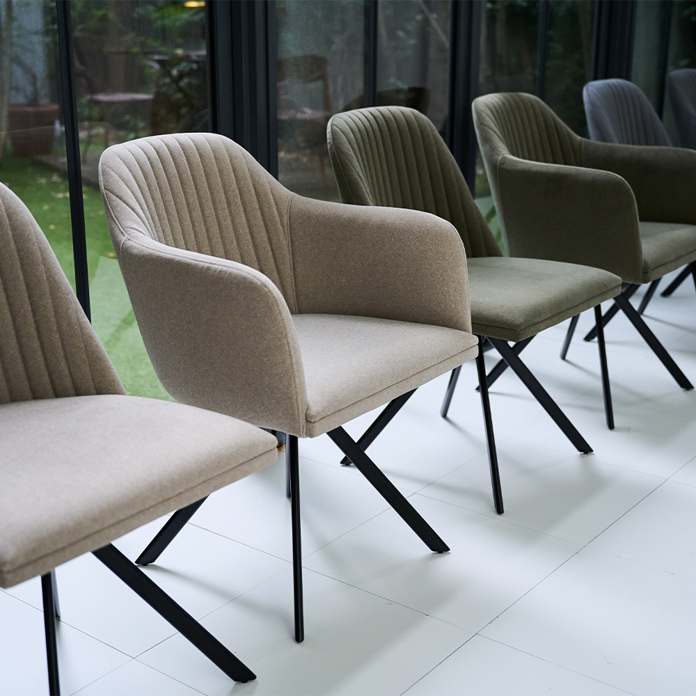 曲線的な背もたれは、椅子に包み込まれているかのような安心感を与えてくれます。