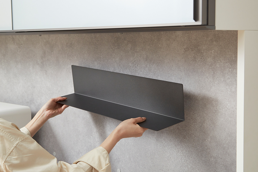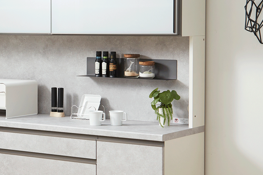 調味料入れやキッチンペーパーなどのキッチングッズを自分好みの使いやすい場所へ。物を浮かせることでお手入れがしやすく清潔なキッチンを保てます。