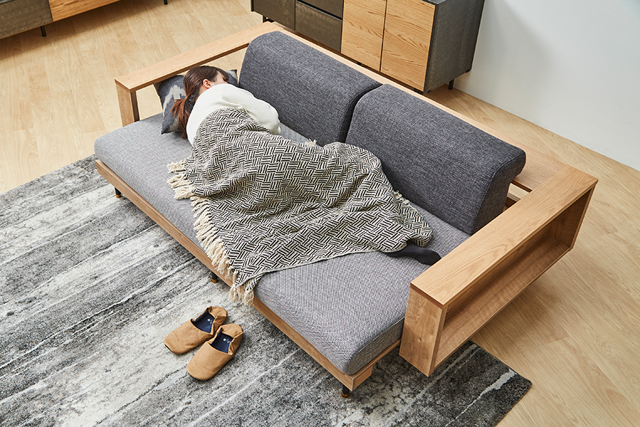 ソファの前側を伸ばしてスライドしてベッドのように使えます。