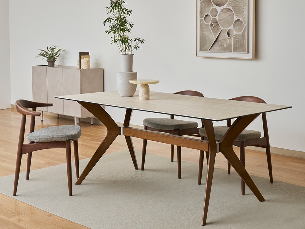 幕板がつかないシンプルな一枚天板の構造は、華奢なクロス脚を際立たせます。