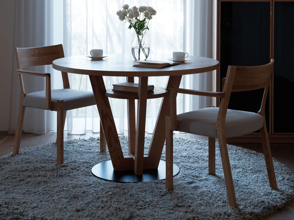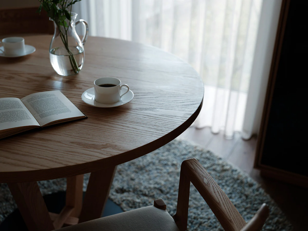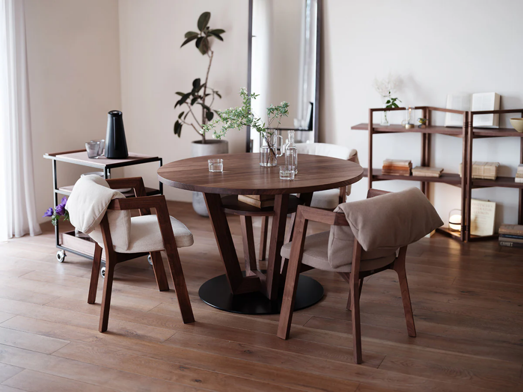 曲線のやわらかな印象が空間にリズムを与える丸テーブル。