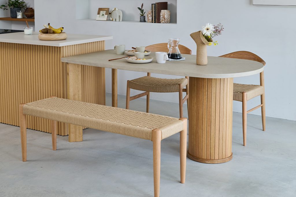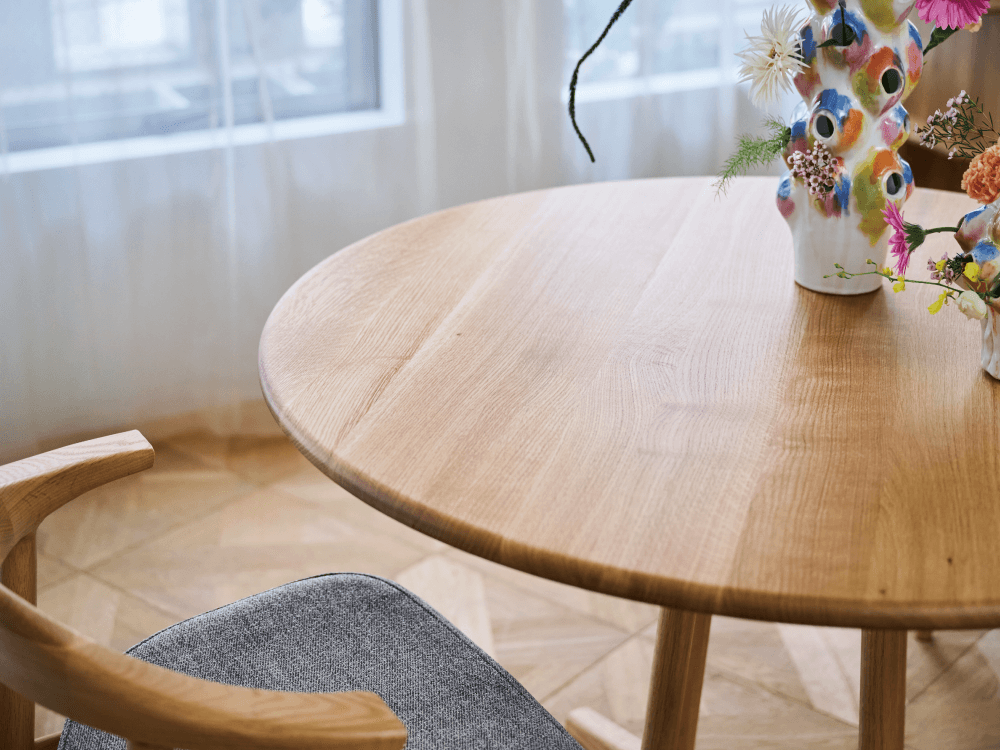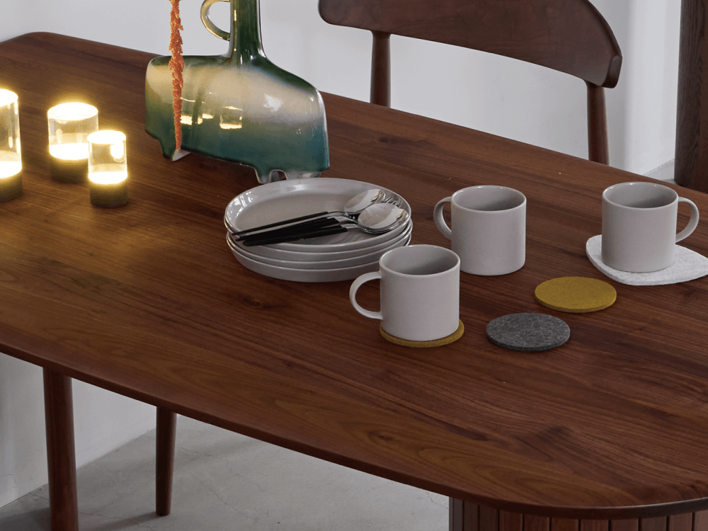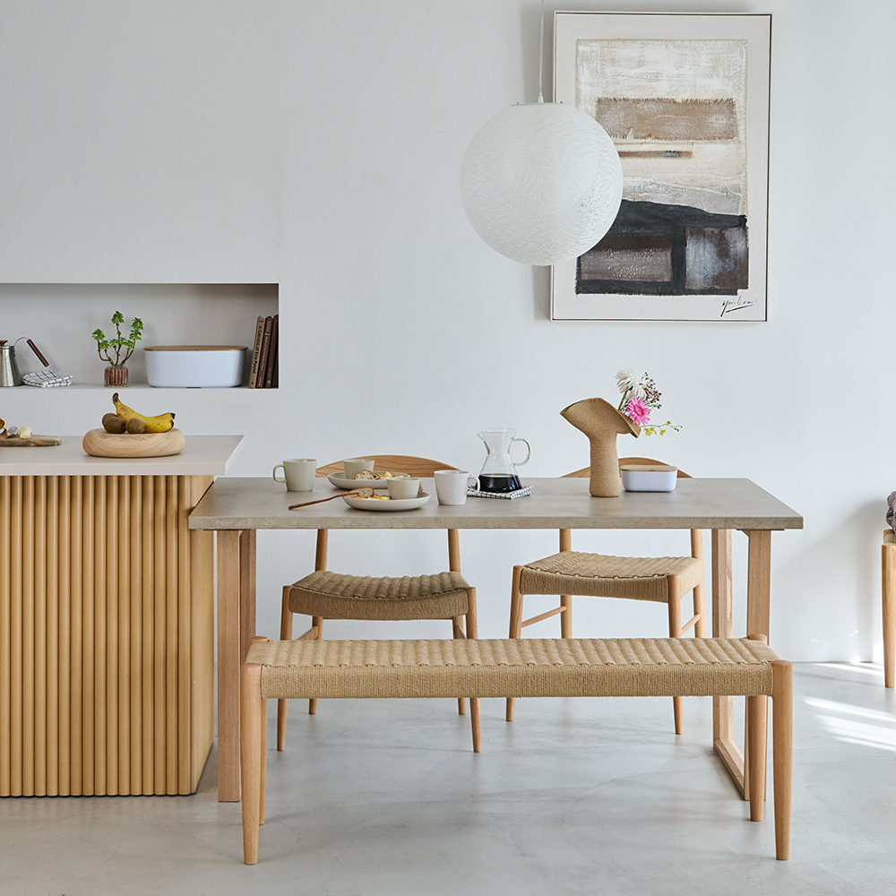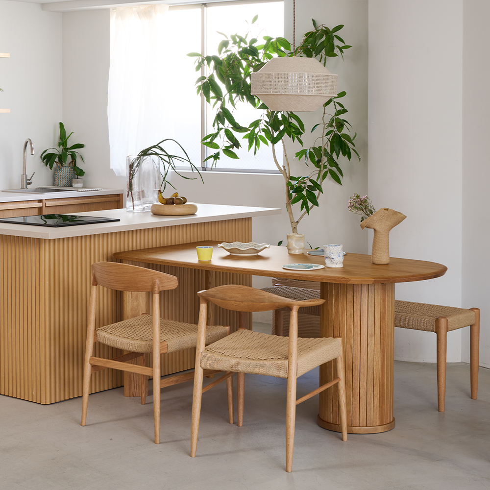 万が一、傷や経年変化が出ても、全体の表情に馴染みやすいのがヨコハギ無垢天板の良さ。