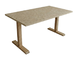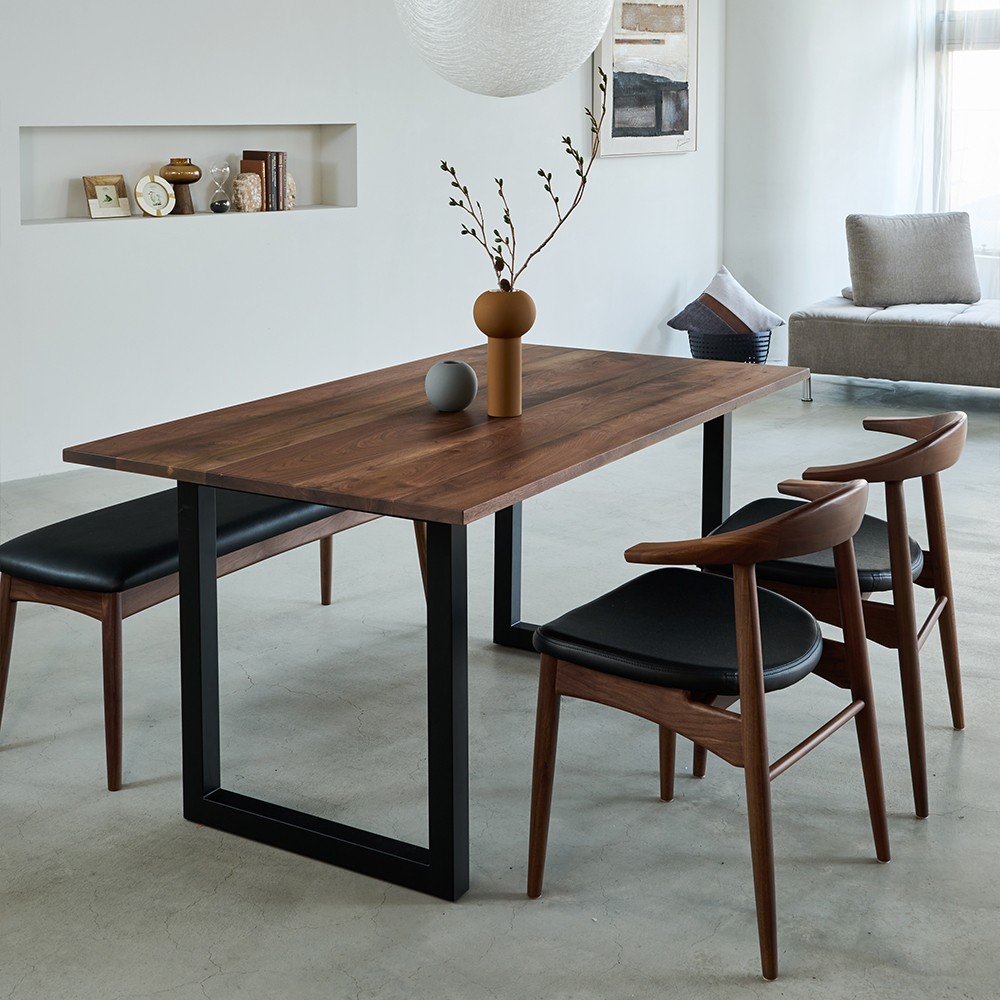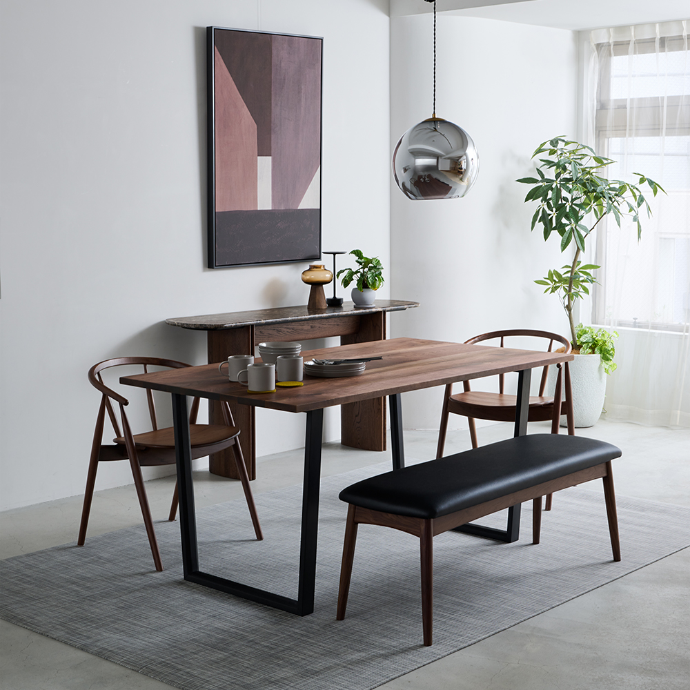 中央で支える構造により、足元がすっきりとした印象です。出入りがしやすく、回転チェアやベンチとコーディネートしたい方におすすめ。