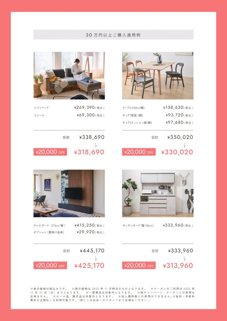 ・対象は家具のみ。他イベント・SALE品・値引きNGブランドなどへの併用・適用不可