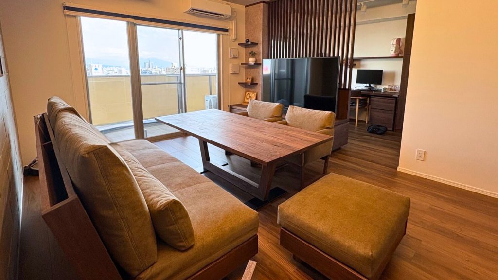 脚を伸ばしてリラックスしたり、来客時の席として使ったりと、